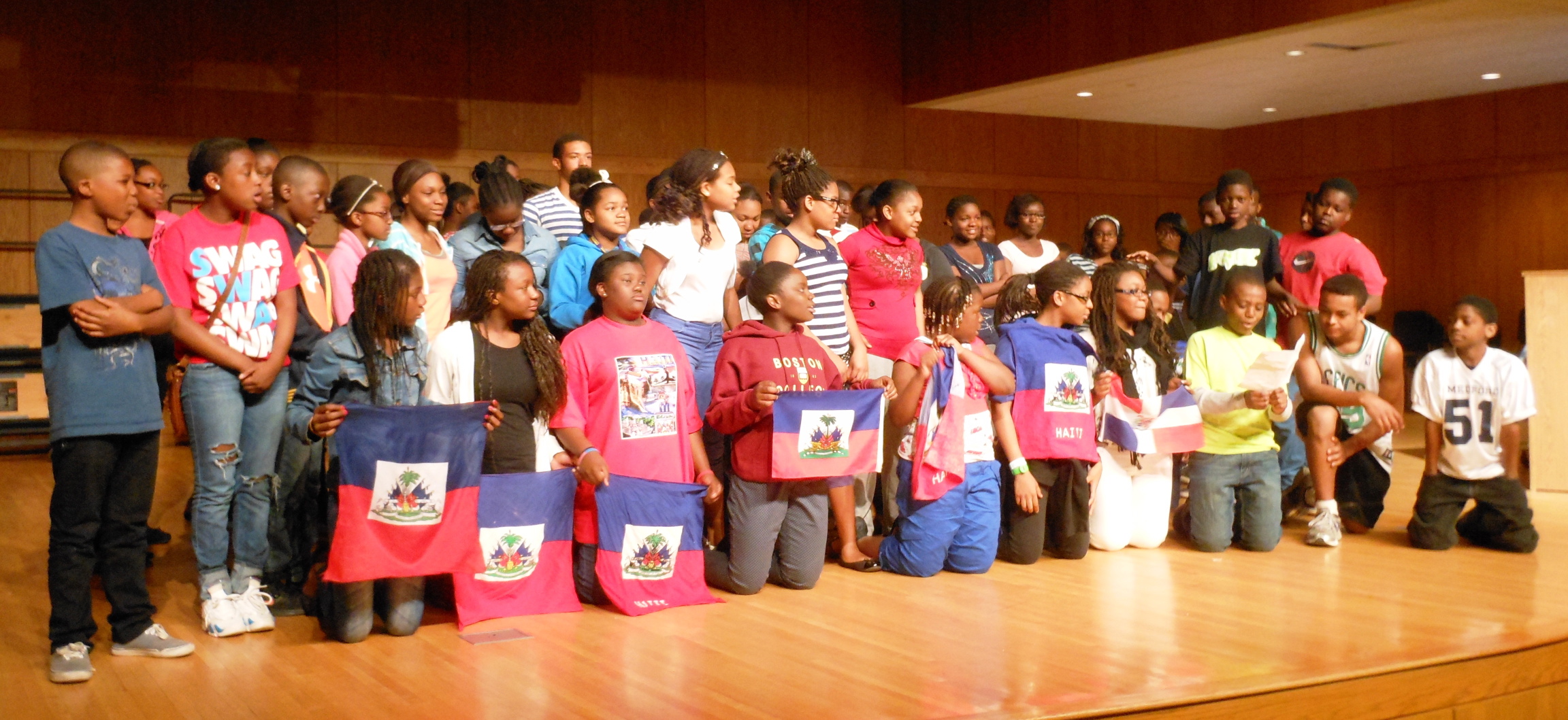 About 75 Haitian students gathered in the McGlynn Middle School auditorium on May 17, 2013, to celebrate Haitian Flag Day.